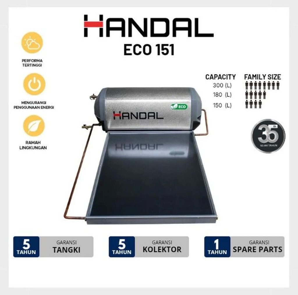 Handal Eco adalah seri pemanas air tenaga surya dengan kapasitas 151 liter.