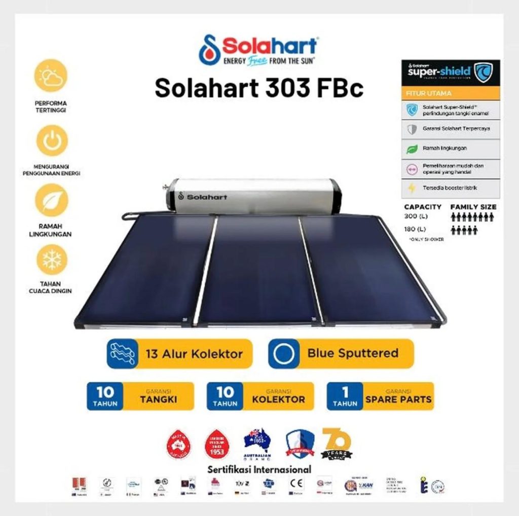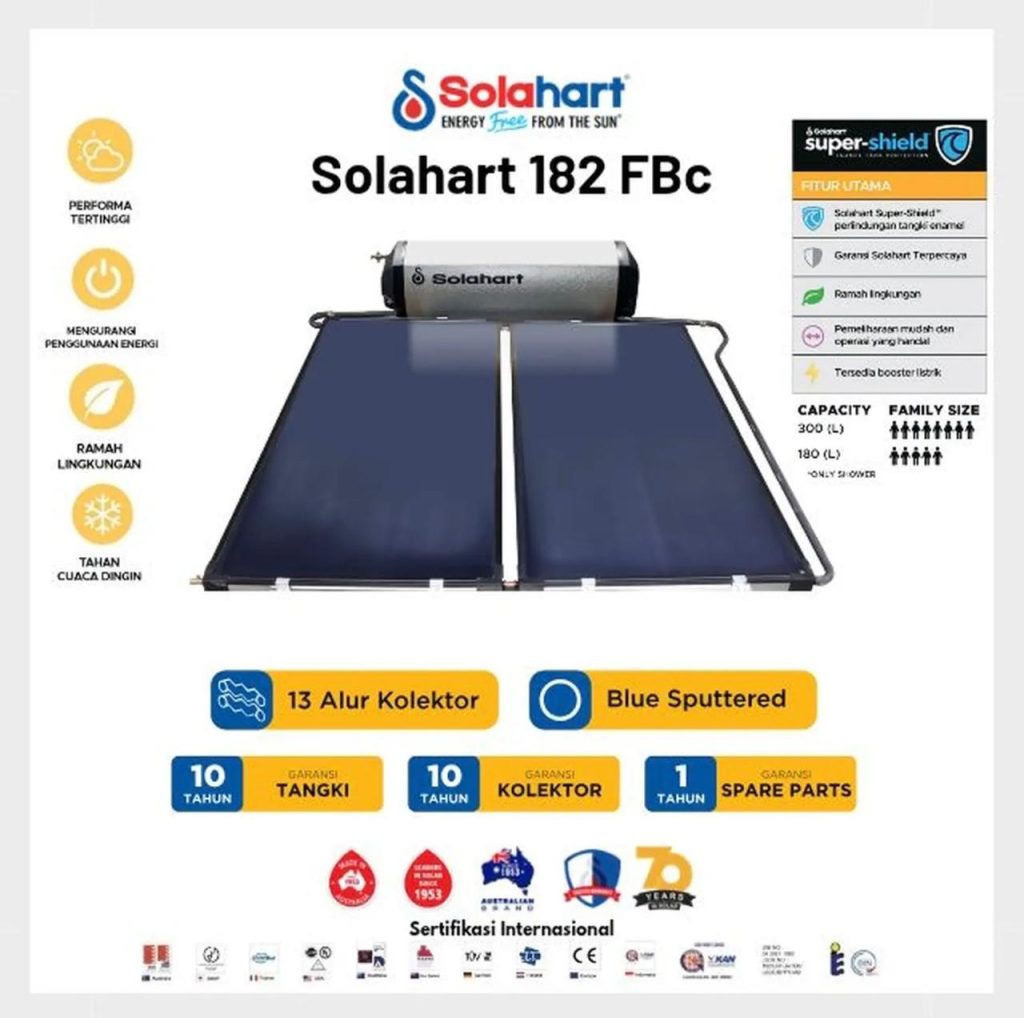 Kesuksesan New Free Heat Series dalam pengembangannya dilandasi filosofi yang sederhana yang lahir dari percobaan & pembuktian akan keandalan & efisiensi dengan spesial FBc Collector (Blue Sputtered Collector) sebagai penemuan collector terbaru hasil inovasi terkini dari Solahart yang mempunyai performance tertinggi saat ini. Kami juga mengembangkan sistem insulasi yang rapat & solid pada tangki penampungan & pengumpul energi sinar matahari untuk dapat menyerap sinar matahari lebih banyak & lebih lama pada plat penyerap panas, sehingga panas yang dihantarkan ke air juga meningkat, dan air panas yang disimpan ditangki tetap terjaga untuk waktu yang lama.